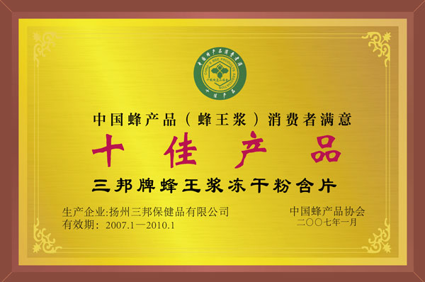 • 中國蜂產(chǎn)品消費(fèi)者滿意十佳產(chǎn)品
